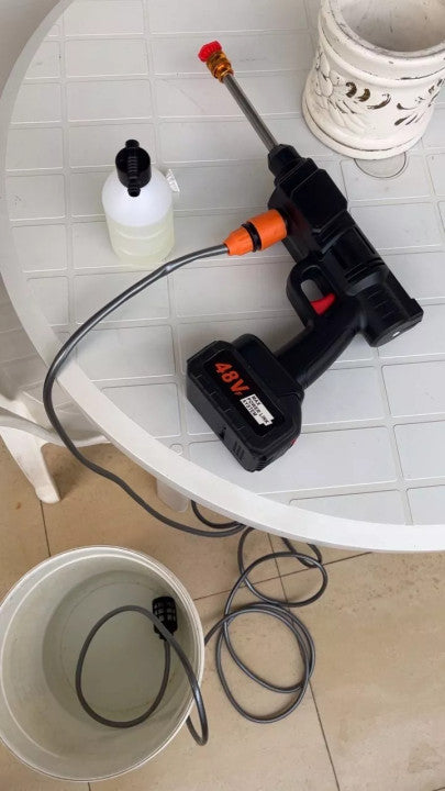 Depende del uso y la boquilla; está pensada para una sesión completa de lavado. Para trabajos largos, se recomienda usar 2 baterías.